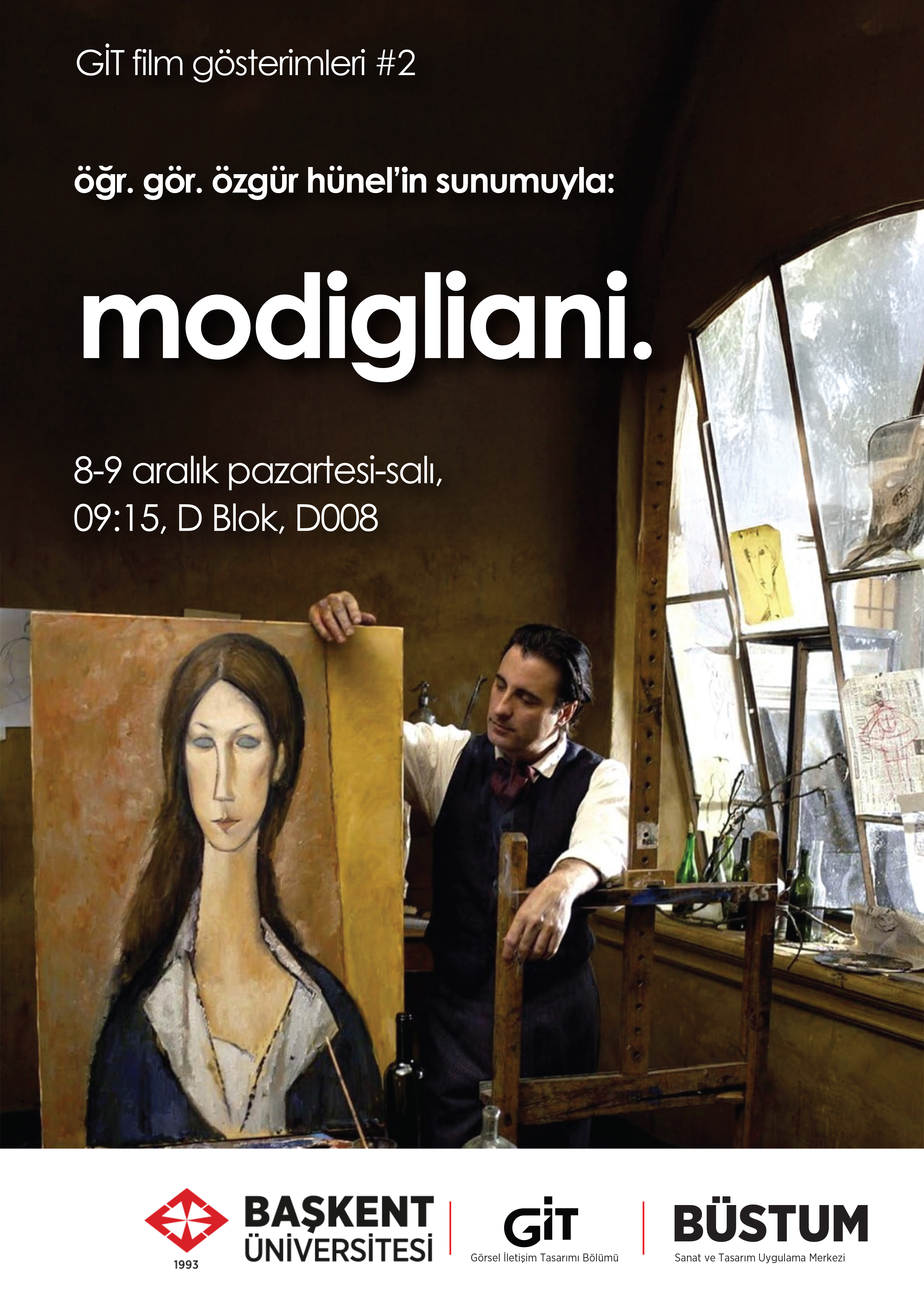 Ressam Amedeo Modigliani'nin hayatından esinlenilen film, izleyiciyi 1900'ler başı Paris'inin bohem modern sanat atmosferine sokuyor ve o dönemin cafe'lerinde birlikte vakit geçiren sanatçıların masalarına bizleri davet ediyor. Film öncesinde bölümümüz Öğretim Görevlisi Özgür Hünel, 20. yy başları Paris'inin modern sanat ekolü hakkında sözlü bir sunum gerçekleştirdi.