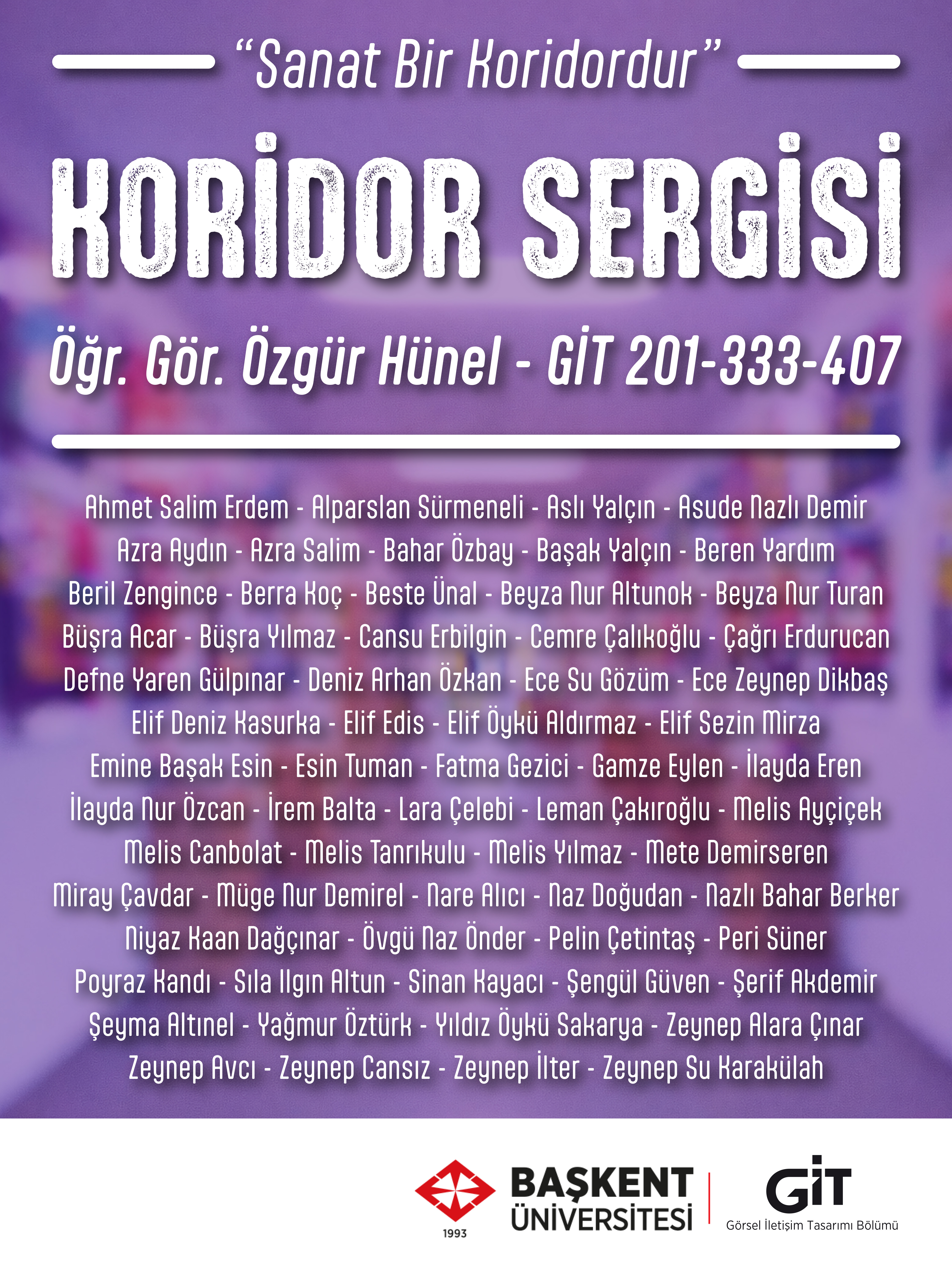 Bölümümüzden Öğr. Gör. Özgür Hünel'in Güz Döneminde verdiği "GİT 201 - Tipografi", "GİT 333 - Mitoloji ve Görsel Sanatlar" ve "GİT 407 - Ambalaj Tasarımı" derslerinde üretilen öğrenci projelerinden seçme işlerin yer aldığı karma sergi, GSTMF binası 2. kat, B bloktaki "GİT Sergi Alanı"nda açıldı.