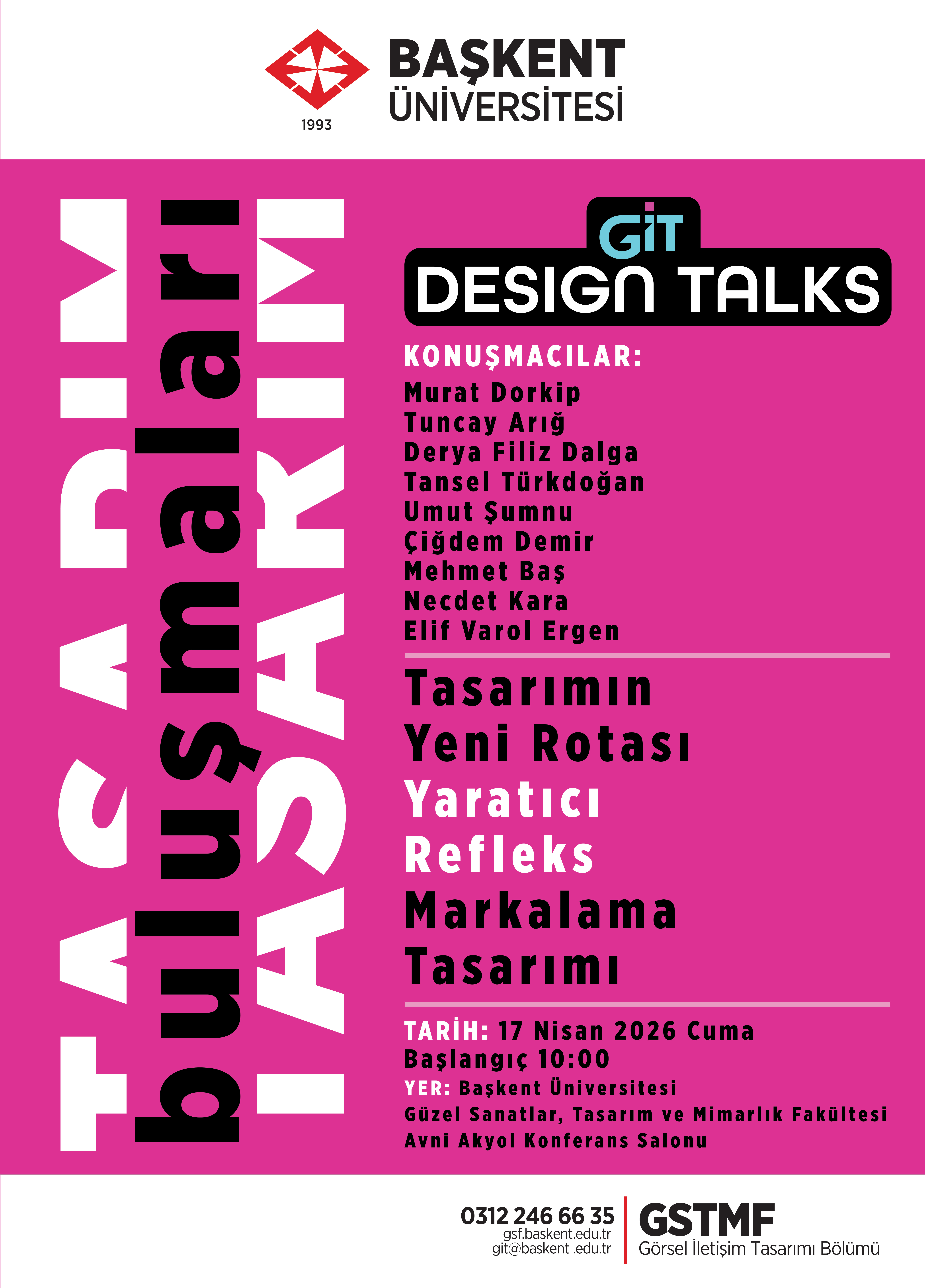 Başkent Üniversitesi Görsel İletişim Tasarımı Bölümü olarak düzenlediğimiz "GİT Design Talks" ile sanat ve tasarım dünyasının usta isimlerini biraraya getirdik; ilham veren vizyonlarını dinledik. Derya Filiz Dalga, Tuncay Arığ, Murat Dorkip, Doç. Dr. Umut Şumnu, Prof. Dr. Tansel Türkdoğan, Prof. Dr. Çiğdem Demir, Necdet Kara ve Doç. Dr. Elif Varol Ergen gibi kıymetli isimlerin katılımıyla; sanat ve tasarımın dününü, bugününü ve geleceğini tartıştık. Teorinin pratikle, tecrübenin yenilikle buluştuğu bu özel günden geriye kalanlar karelerde... Emeği geçen tüm konuklarımıza ve katılımcılarımıza teşekkürlerimizle.